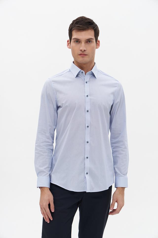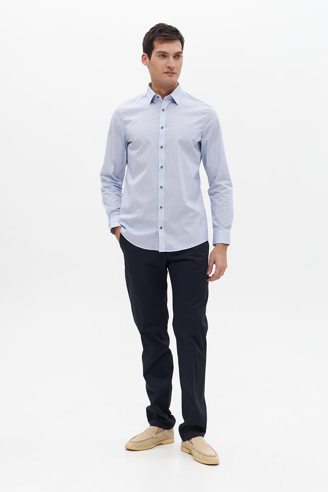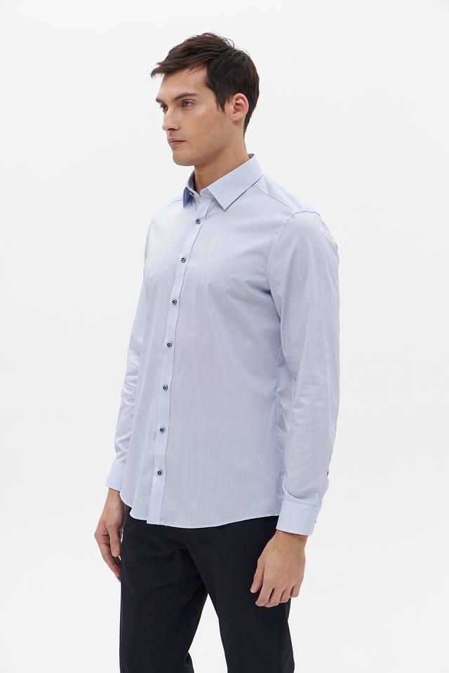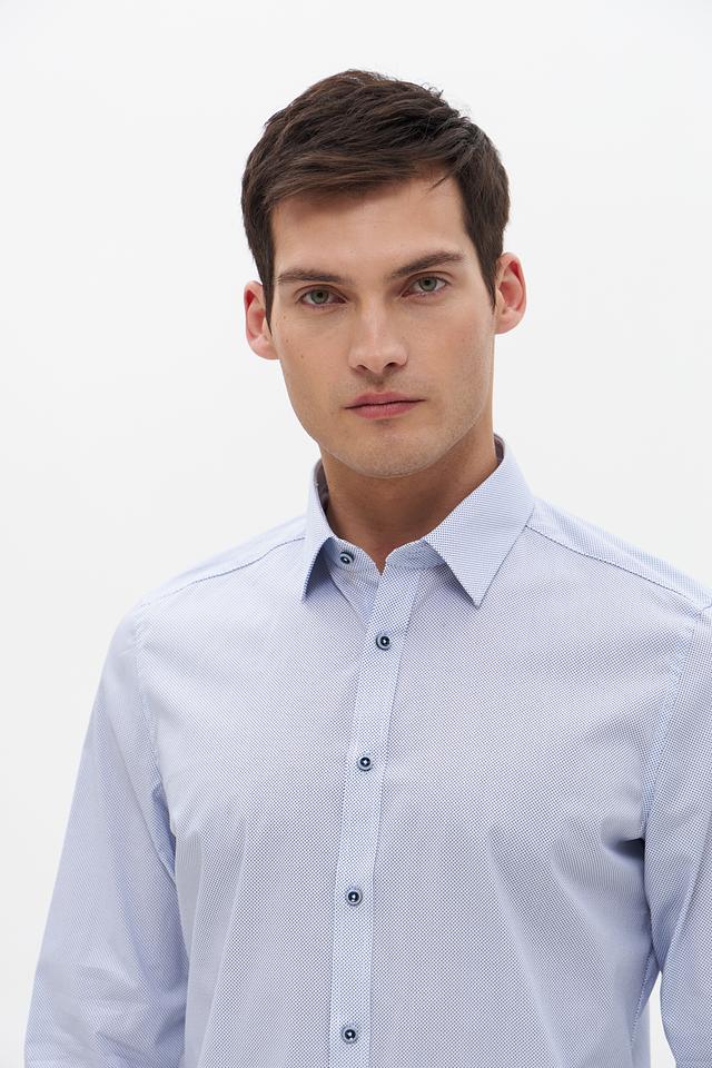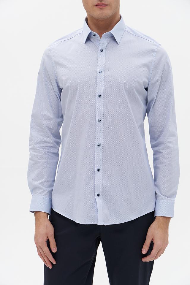 Мужская рубашка Venti голубого цвета с мелким геометрическим рисунком. Классический крой и длинные рукава делают эту рубашку универсальным элементом гардероба. Состав: хлопок 97%, эластан 3%