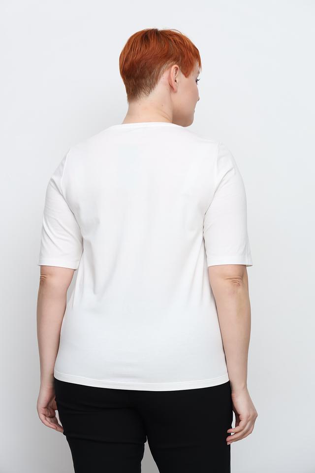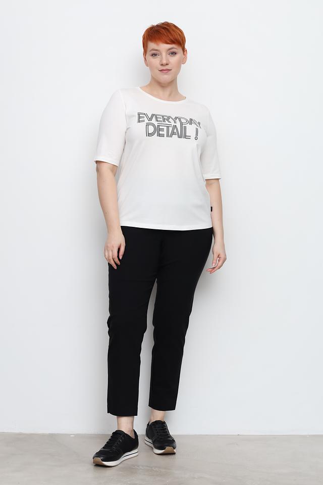Белая футболка Via Appia DUE женского кроя с оригинальным принтом. Изготовлена из мягкого и приятного к телу сочетания хлопка и модала, обеспечивающего комфорт в носке. Стильный и лаконичный дизайн. Состав: хлопок 47%, модал 47%, эластан 6%