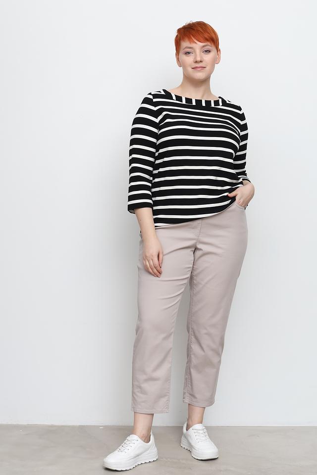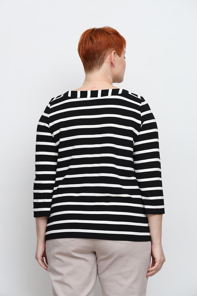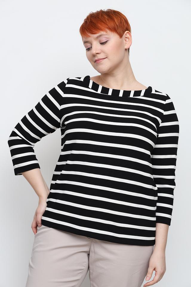 Женский джемпер Via Appia чёрно-белого цвета с полоской и рукавом 3/4. Изготовлен из мягкой вискозы с добавлением полиэстера и эластана для комфорта и хорошей посадки. Состав: вискоза 71%, полиэстер 27%, эластан 2%