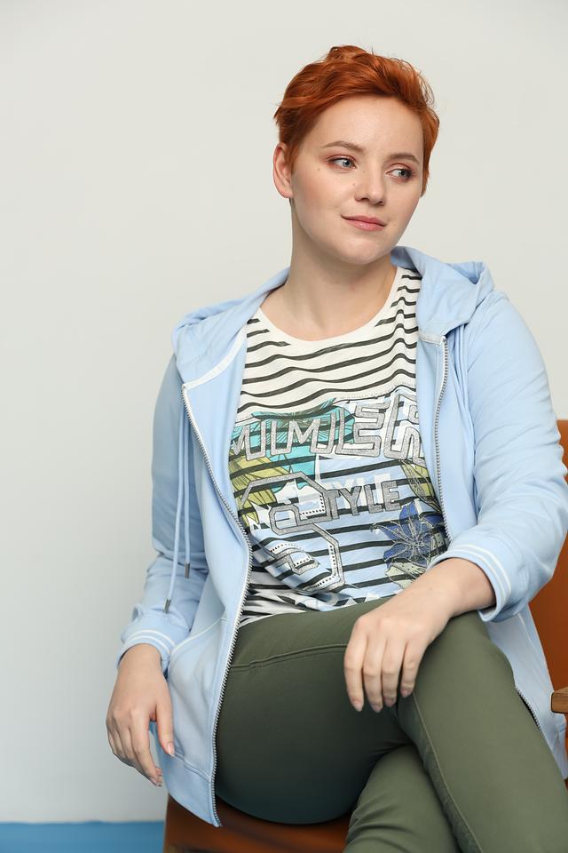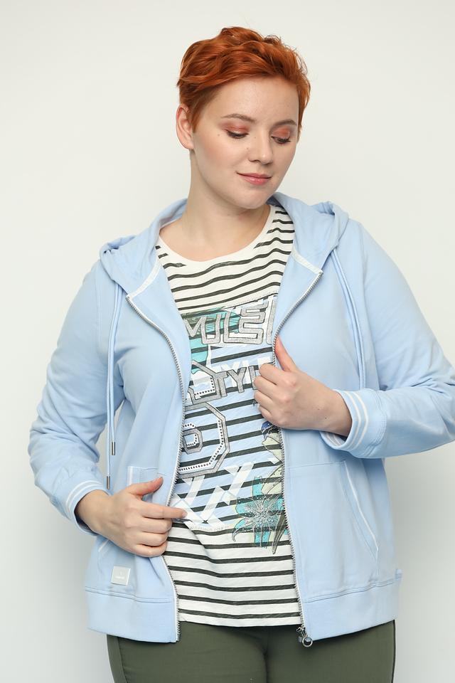 Женский жакет Via Appia голубого цвета – это удобная и стильная модель с капюшоном и застежкой-молнией. Жакет выполнен из мягкого хлопка с добавлением эластана, что обеспечивает комфорт в носке и свободу движений. Состав: хлопок 95%, эластан 5%