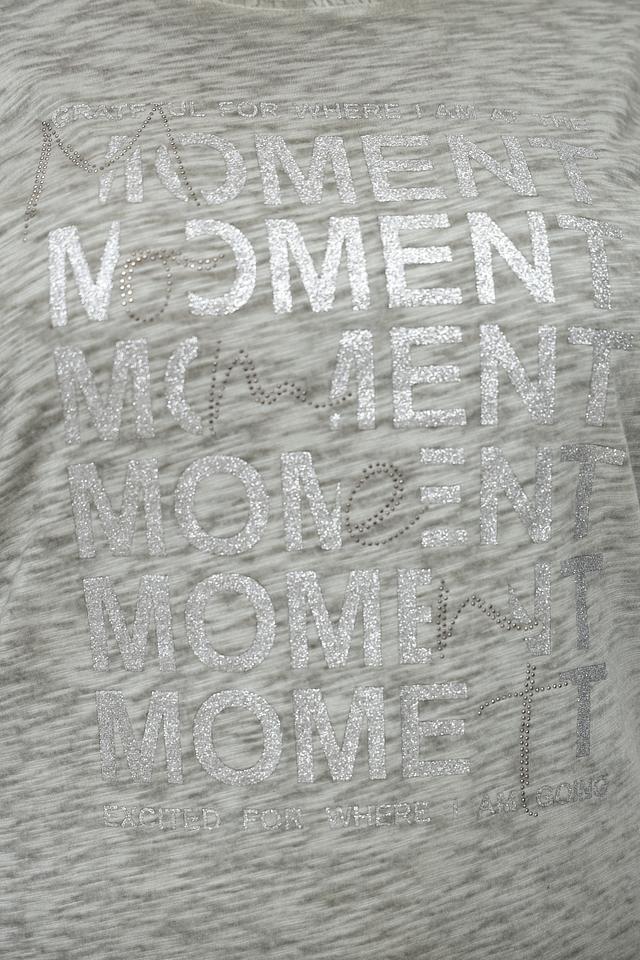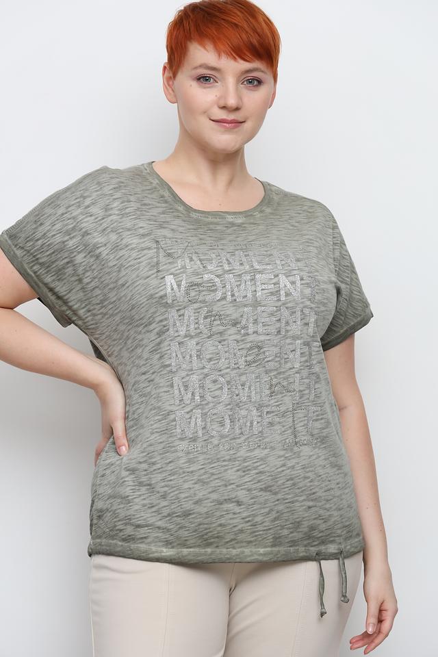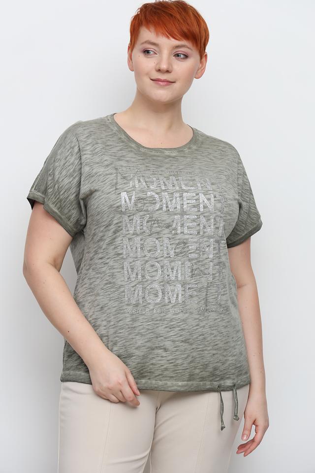 Эта футболка от Via Appia станет отличным дополнением к вашему гардеробу. Она выполнена в хаки цвете и украшена стильным принтом "MOMENT", который добавляет образу современности.