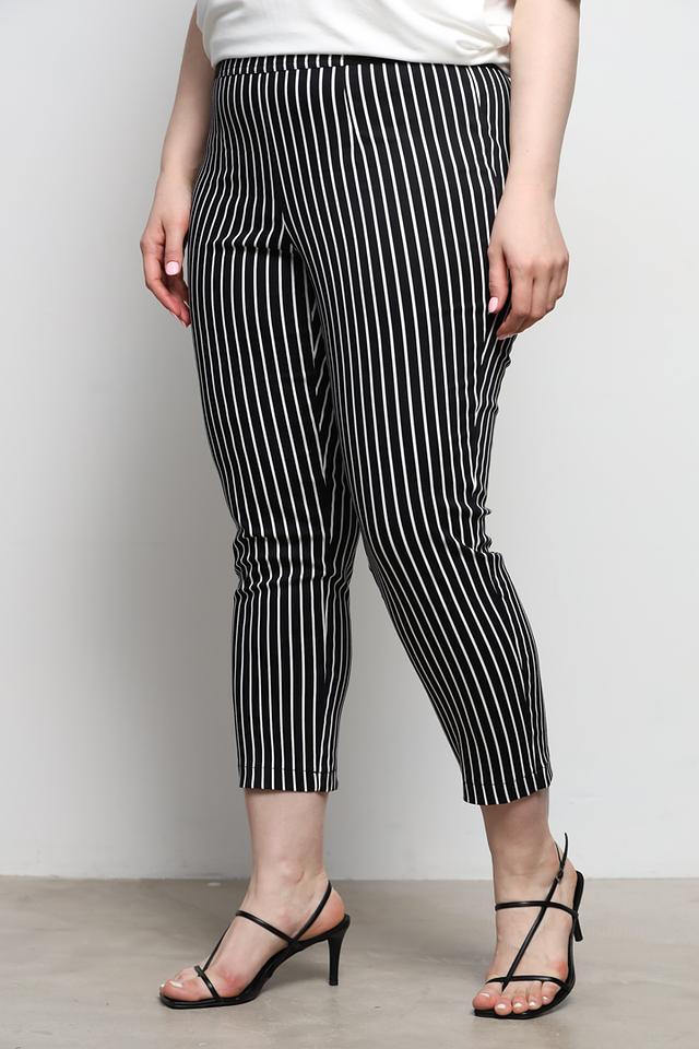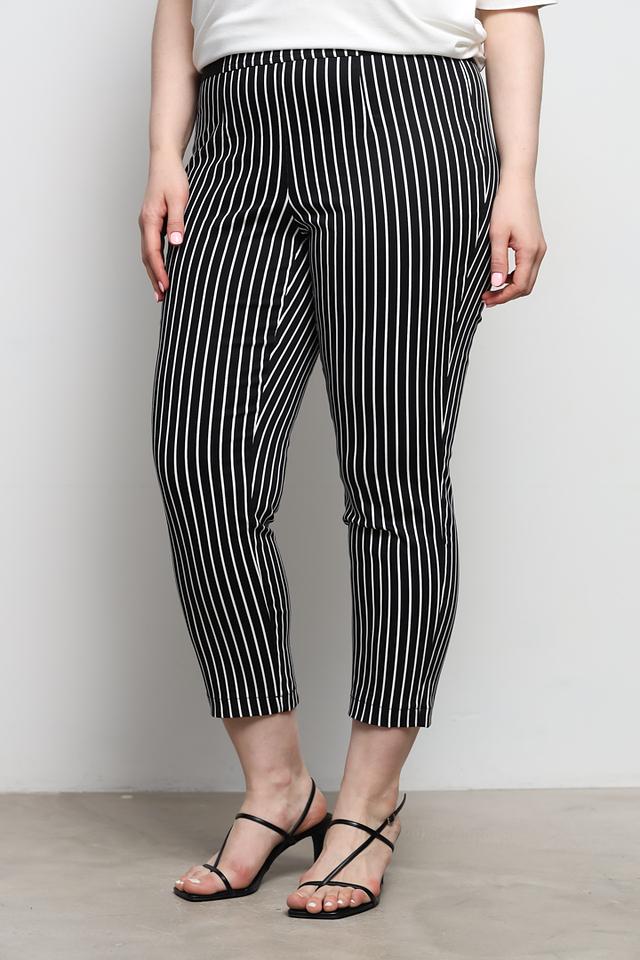 Женские брюки Via Appia чёрно-белого цвета с вертикальной полоской. Модель выполнена из мягкого хлопка с добавлением эластана, обеспечивающего комфортную посадку. Брюки идеально подойдут для создания стильного повседневного образа. Состав: хлопок 97%, эластан 3%