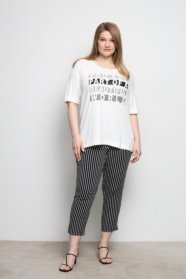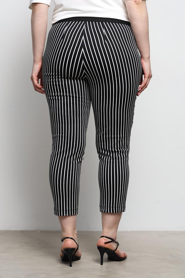 Эти стильные брюки от Via Appia станут отличным дополнением к вашему гардеробу. Классический чёрно-белый рисунок в вертикальную полоску визуально вытягивает силуэт и делает образ более изящным.