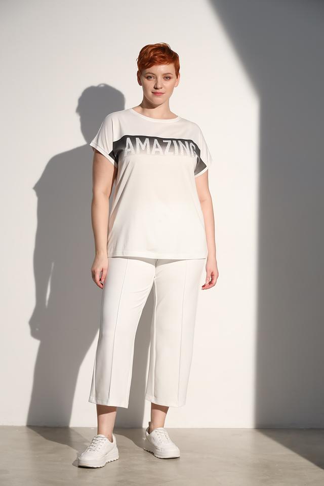 Белая футболка Via Appia DUE из хлопка и модала с надписью "AMAZING". Модель свободного кроя с короткими рукавами и округлым вырезом горловины станет отличным дополнением к вашему образу. Состав: хлопок 50%, модал 50%
