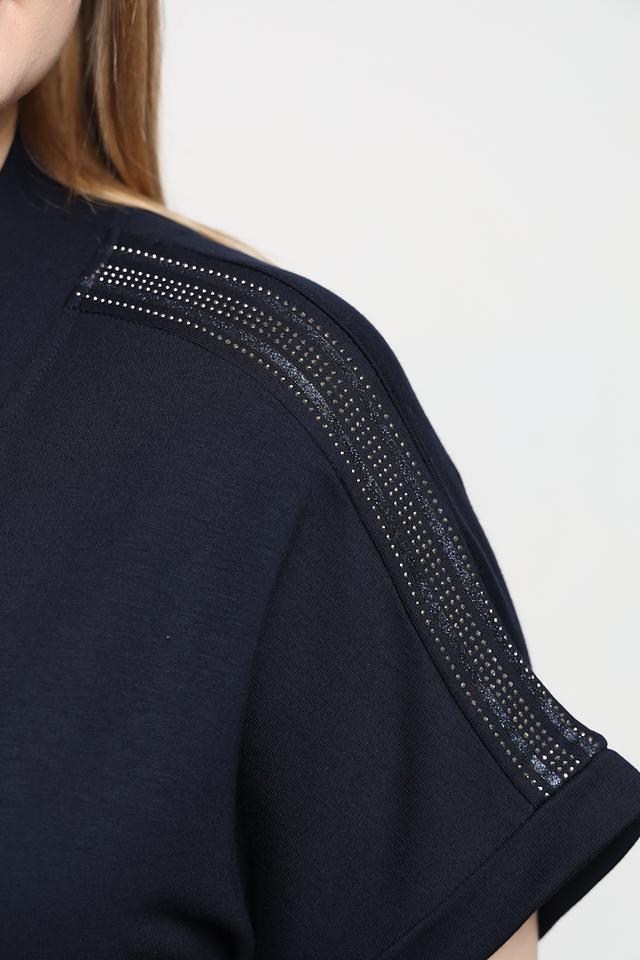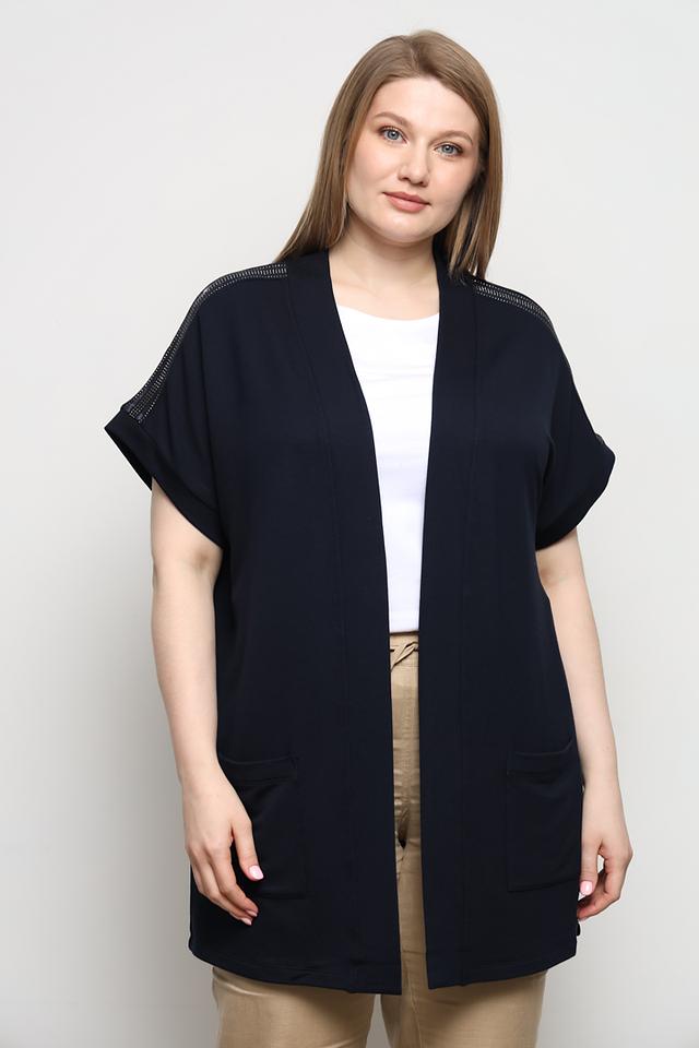 Стильный кардиган Via Appia темно-синего цвета с короткими рукавами и декоративной отделкой на плечах. Модель выполнена из мягкой вискозы с добавлением полиэстера и эластана, обеспечивающих комфорт и хорошую посадку. Состав: вискоза 59%, полиэстер 36%, эластан 5%