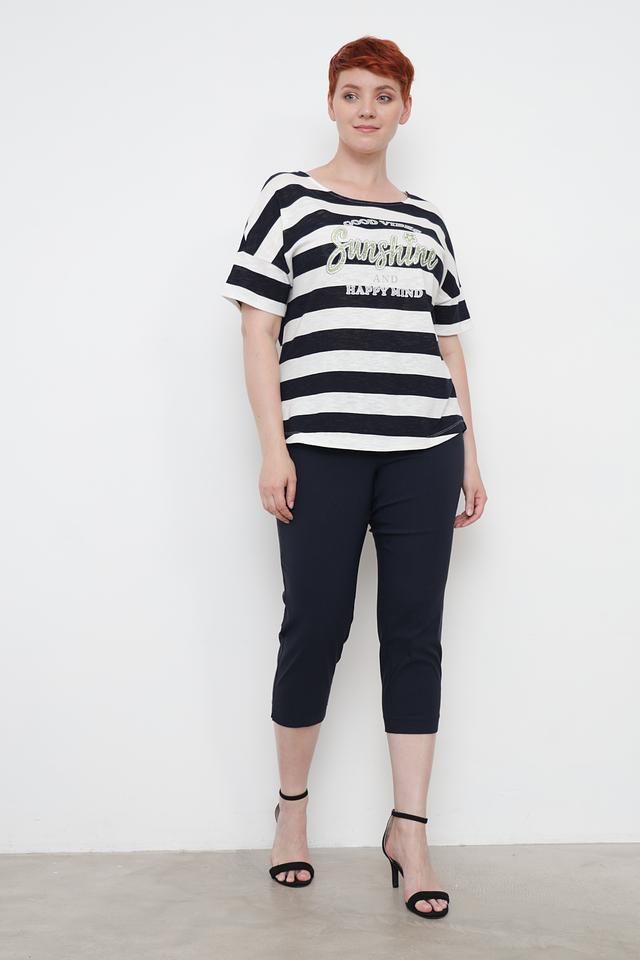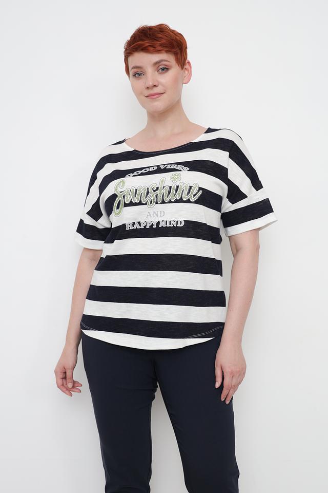 Женская футболка Via Appia выполнена в классической черно-белой полоске и украшена ярким принтом. Изготовлена из 100% хлопка, обеспечивая комфорт и воздухопроницаемость. Состав: хлопок 100%
