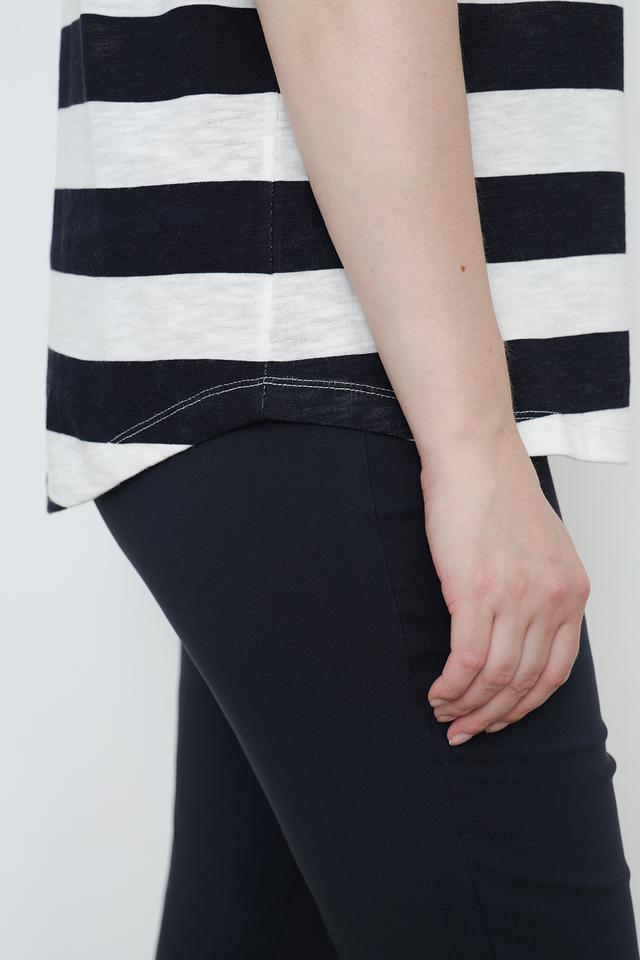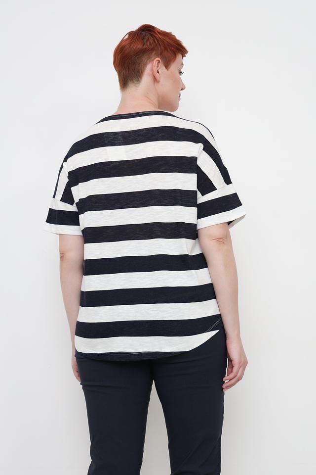 Эта стильная футболка от Via Appia станет отличным дополнением к вашему гардеробу. Модель выполнена в горизонтальную черно-белую полоску, что визуально освежает образ.