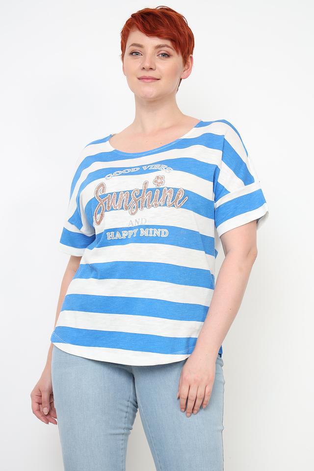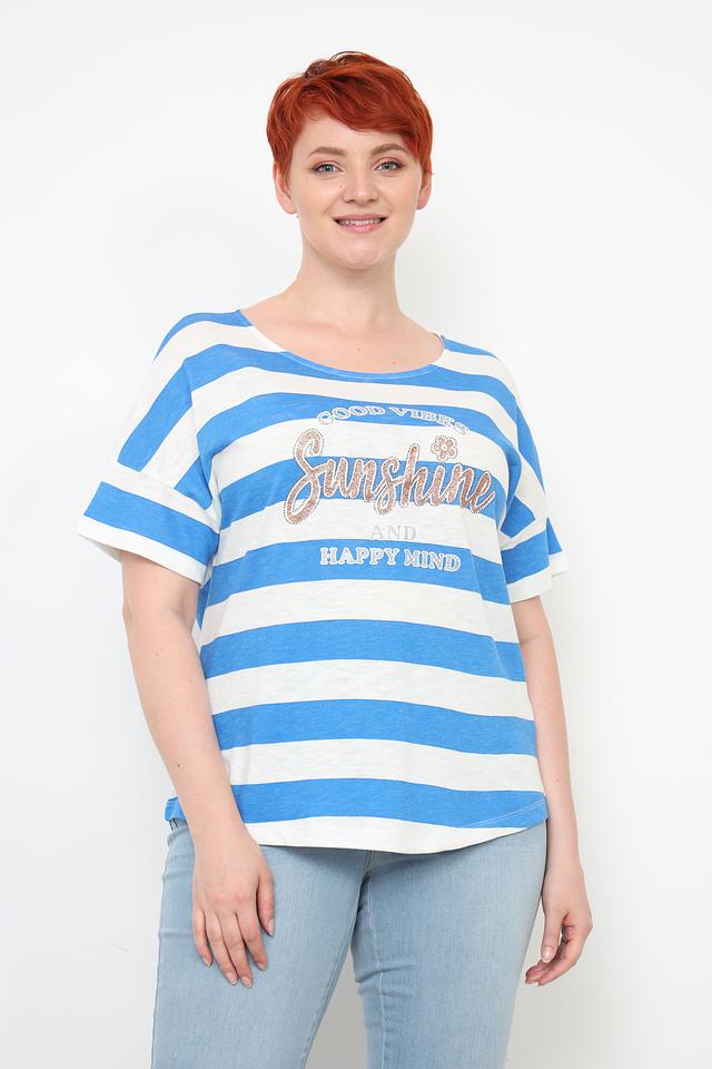 Женская футболка Via Appia голубого цвета в полоску с ярким принтом. Модель выполнена из 100% хлопка, обеспечивая комфорт и воздухопроницаемость. Футболка станет отличным дополнением к вашему летнему гардеробу. Состав: хлопок 100%