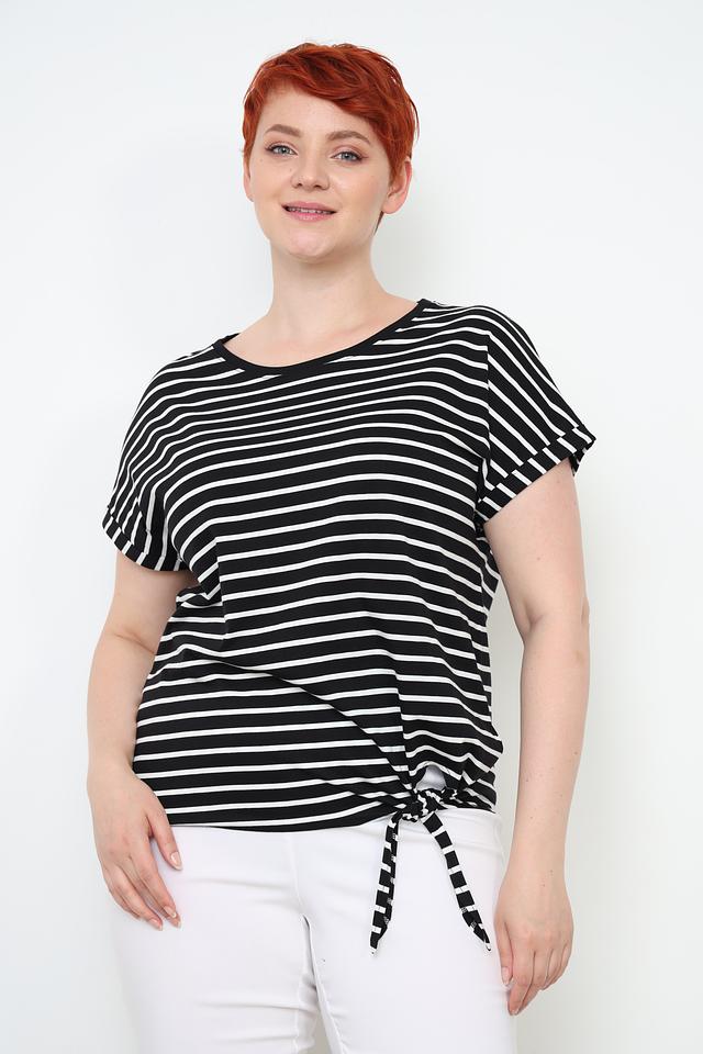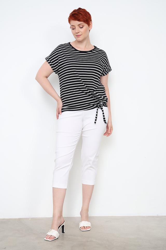 Женская футболка Via Appia чёрно-белого цвета с короткими рукавами и завязкой на талии. Изготовлена из мягкого хлопка с модалом, обеспечивающего комфорт и приятные ощущения при носке. Состав: хлопок 50%, модал 50%