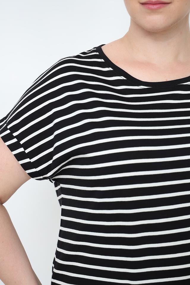 Эта стильная футболка от Via Appia станет отличным дополнением к вашему гардеробу. Она выполнена в классическом чёрно-белом горизонтальном полосатом дизайне, который всегда актуален.