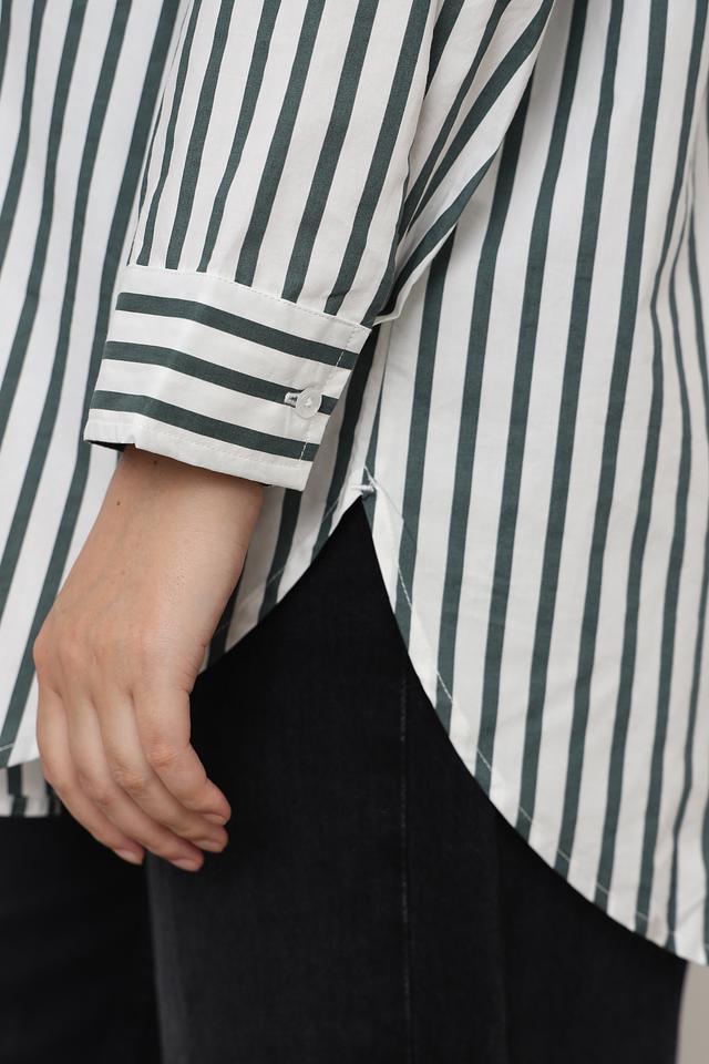 Эта рубашка от Via Appia станет отличным дополнением к вашему гардеробу. Выполнена в полоску, сочетающую белый и насыщенный зеленый цвет, что придает ей свежий и современный вид.