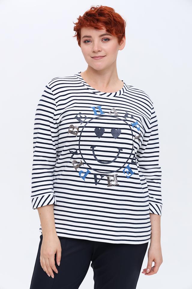 Женский лонгслив Via Appia белого и синего цвета с ярким принтом в виде смайлика. Изготовлен из 100% хлопка, обеспечивающего комфорт и удобство в носке. Отличный выбор для создания повседневного образа. Состав: хлопок 100%