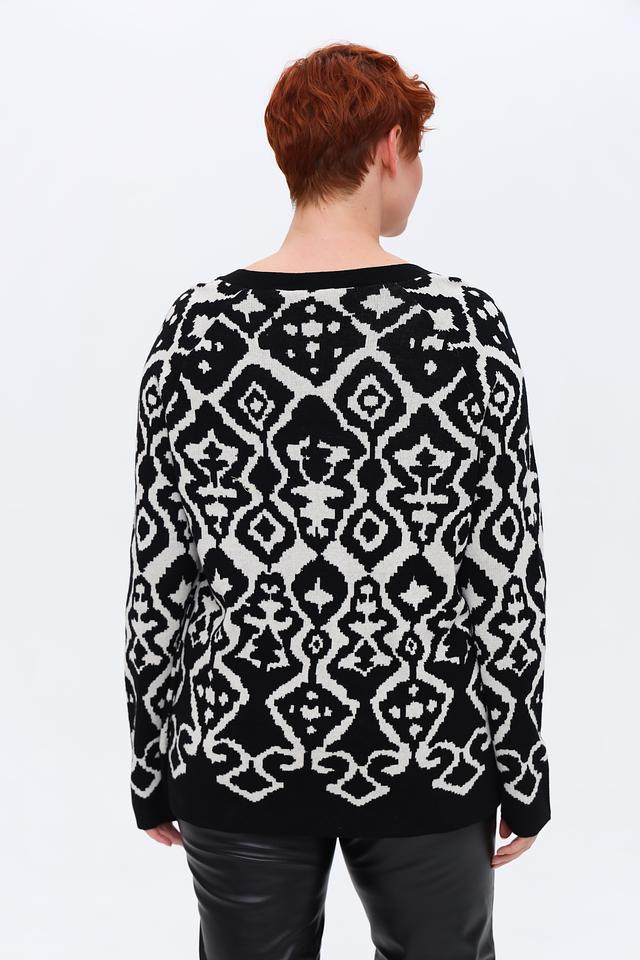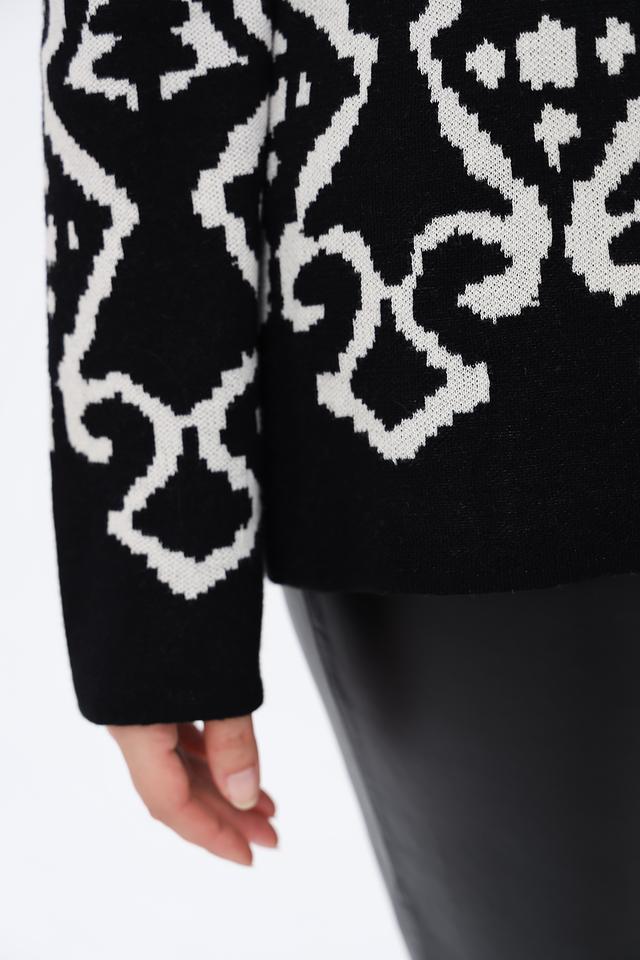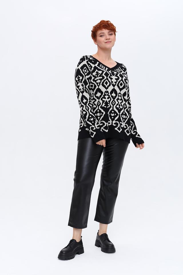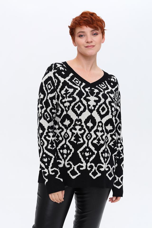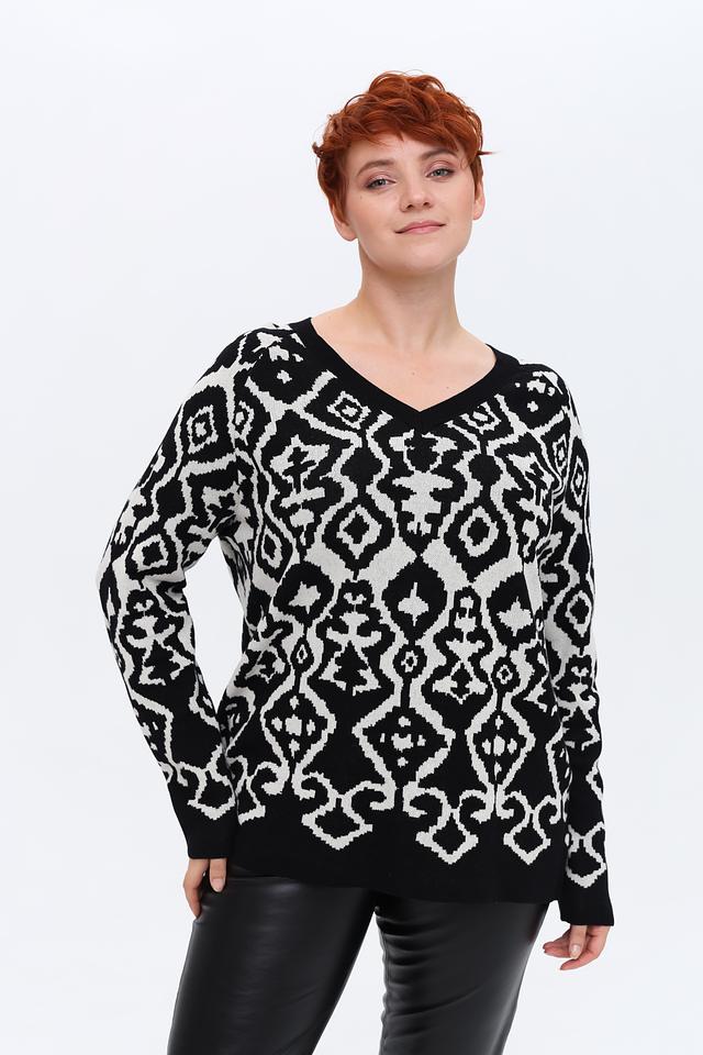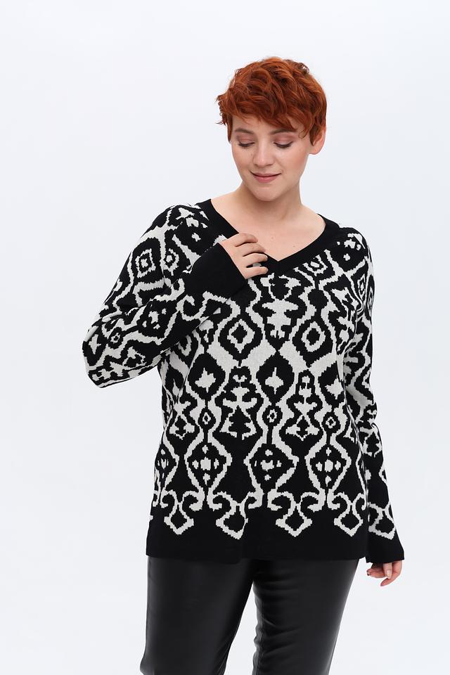 Этот пуловер от Via Appia – идеальный выбор для тех, кто ценит комфорт и стиль. Пуловер выполнен в чёрно-белой цветовой гамме с выразительным геометрическим узором, который придаёт ему оригинальность.