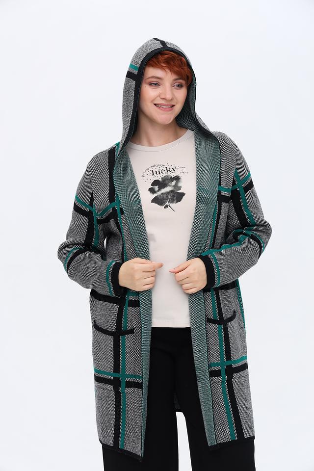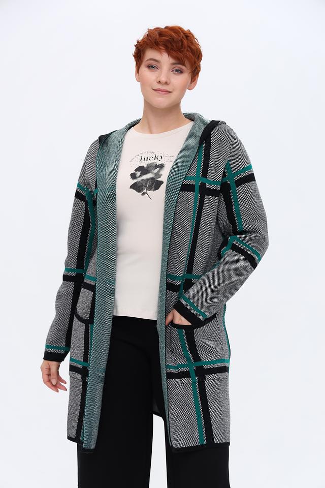 Серый жакет Via Appia с геометрическим узором в клетку – стильное и комфортное решение для создания многослойных образов. Модель с капюшоном и открытым кроем добавит непринужденности вашему гардеробу. Состав: хлопок 60%, полиакрил 40%