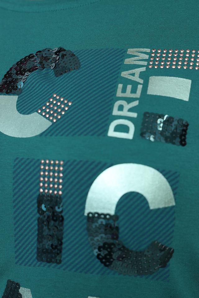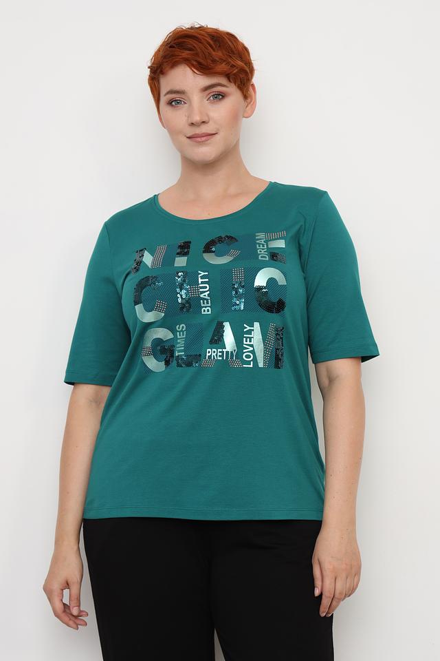Эта футболка от Via Appia станет отличным дополнением к вашему гардеробу. Она выполнена в насыщенном зелёном цвете и украшена ярким принтом с надписями и графическими элементами.