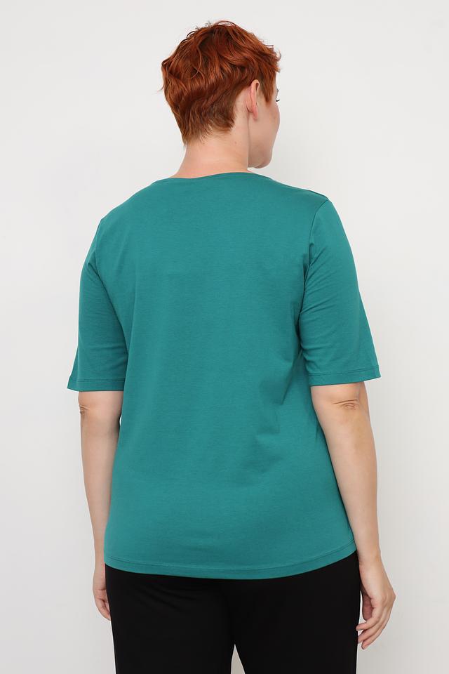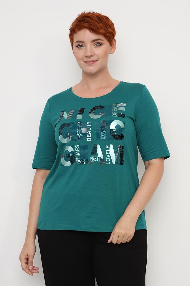 Зелёная футболка Via Appia DUE с оригинальным принтом — стильное и комфортное решение для повседневного образа. Модель выполнена из мягкого хлопка с добавлением модала и эластана, обеспечивающих приятные тактильные ощущения и свободу движений. Состав: хлопок 47%, модал 47%, эластан 6%