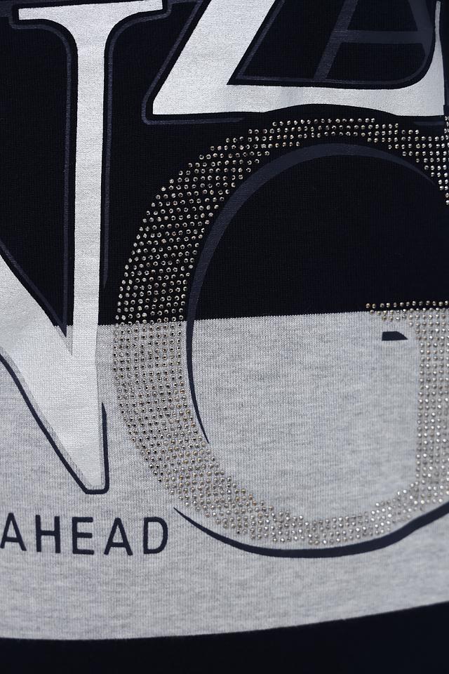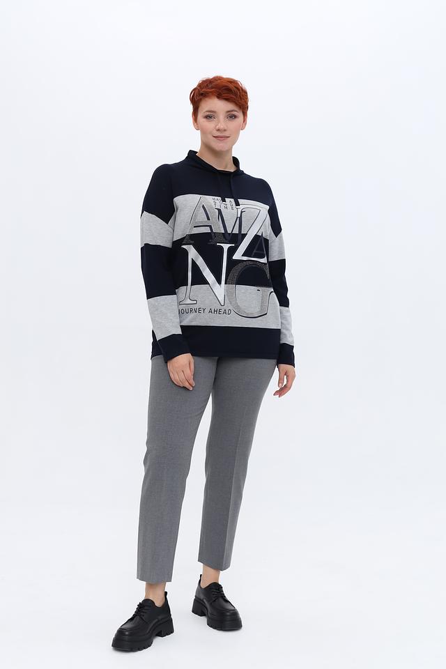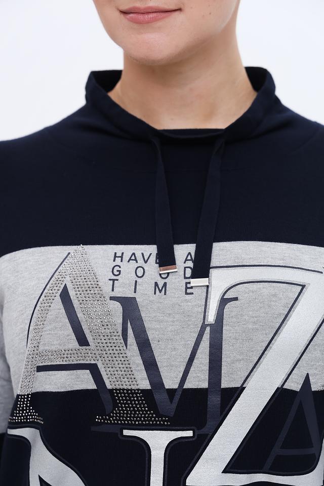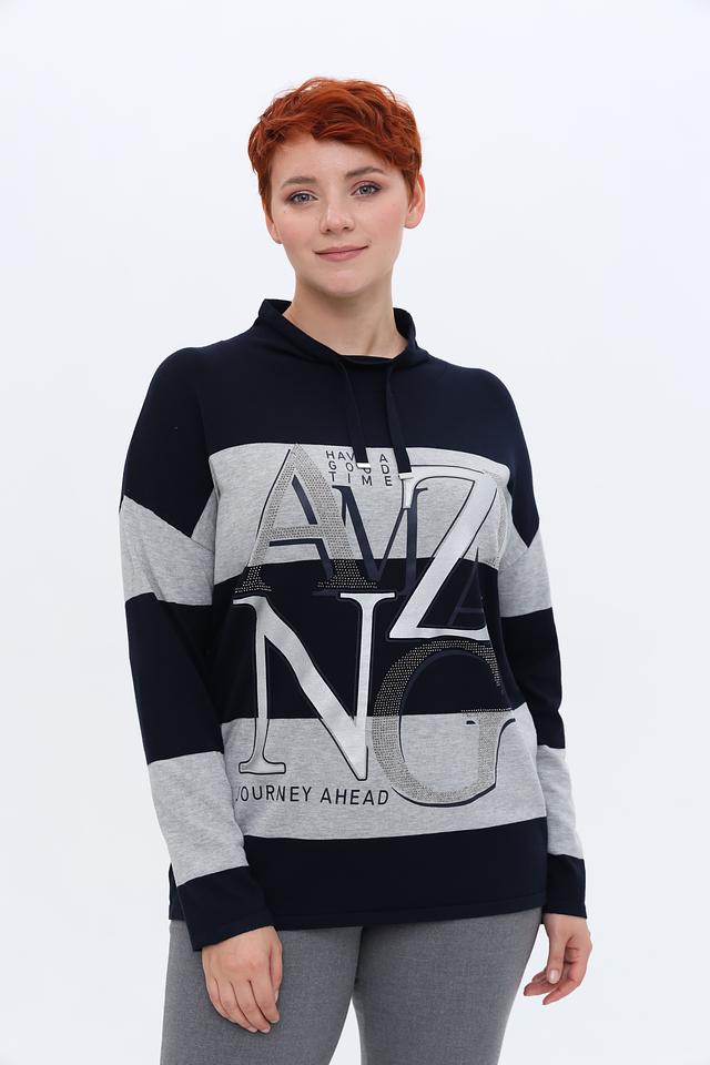 Стильный пуловер Via Appia темно-синего и серого цвета с ярким графичным принтом. Модель с капюшоном и удобным кроем станет отличным дополнением к вашему образу. Состав: вискоза 72%, полиамид 28%