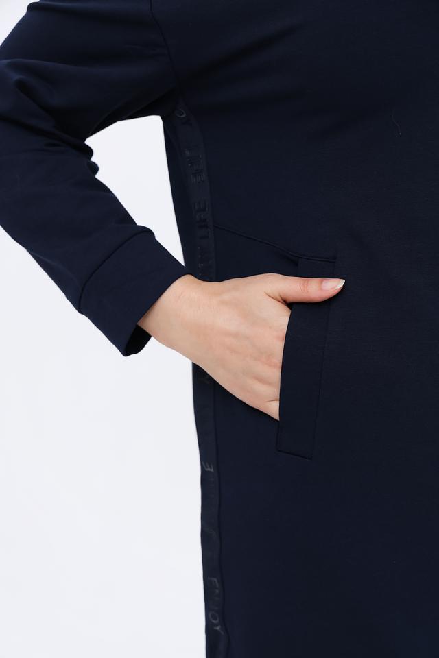 Темно-синее платье Via Appia DUE из мягкого трикотажа – комфортный выбор для повседневной носки. Модель с удобным воротником-стойкой и декоративными шнурками на капюшоне, а также функциональными карманами. Состав включает хлопок, полиэстер и эластан. Состав: хлопок 71%, полиэстер 24%, эластан 5%