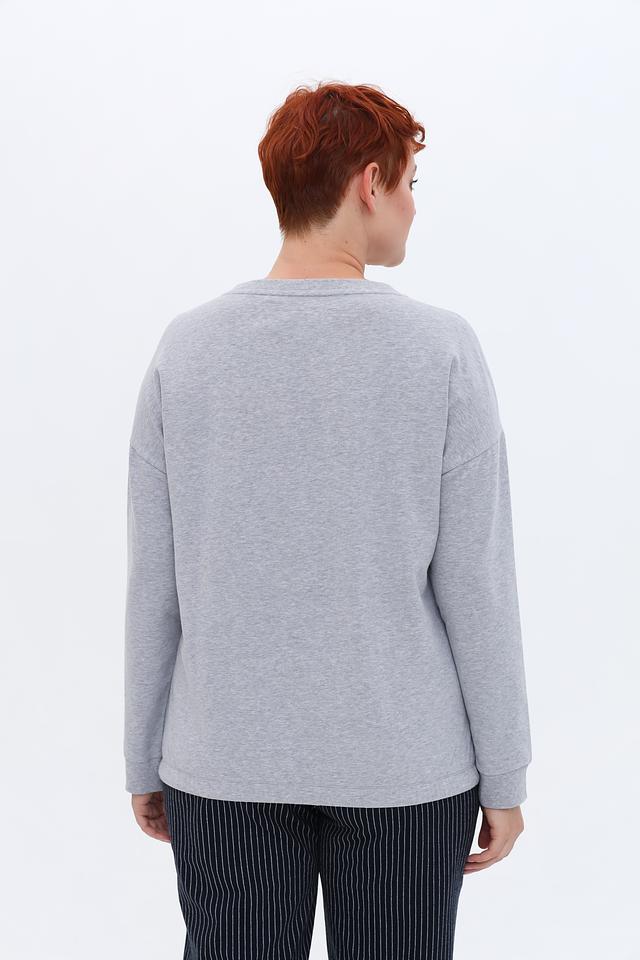 Серый пуловер Via Appia с надписью "FEEL GOOD KEEP IT SIMPLE" — комфортная и стильная модель из хлопка с добавлением эластана. Универсальный вариант для создания повседневных образов. Состав: хлопок 95%, эластан 5%