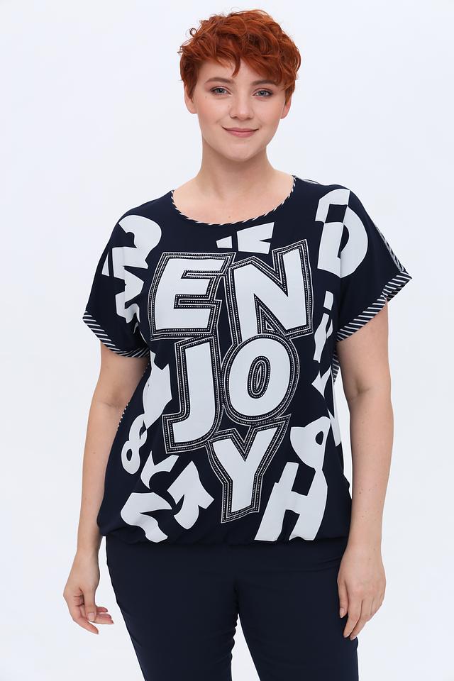 Женская футболка Via Appia темно-синего цвета с ярким белым принтом и короткими рукавами. Изготовлена из мягкой вискозы с добавлением эластана для комфорта и свободы движений. Стильный и удобный вариант для повседневного образа. Состав: вискоза 90%, эластан 10%