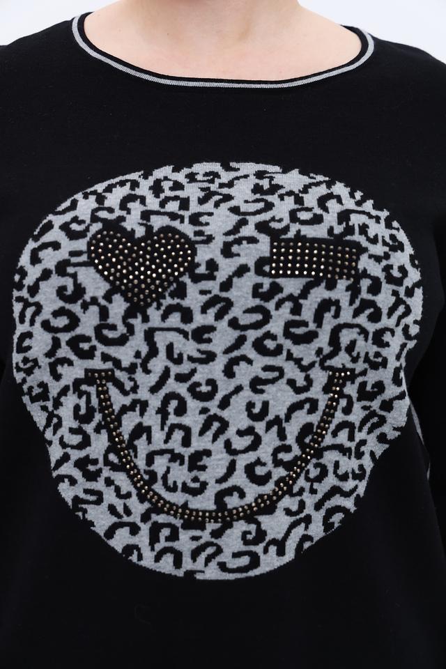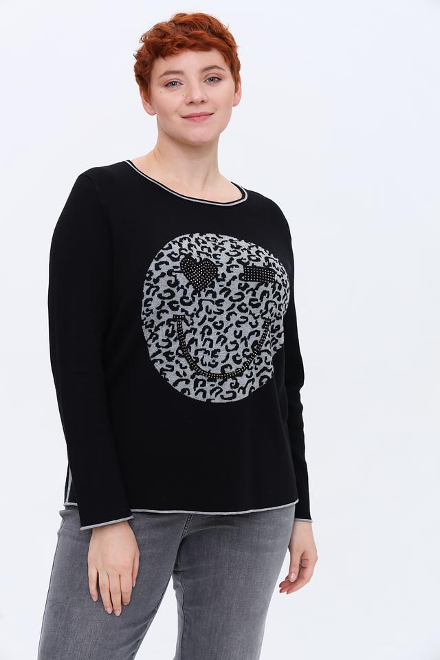 Этот стильный пуловер от Via Appia станет ярким акцентом вашего гардероба. Выполненный в классическом чёрном цвете, он украшен эффектным принтом в виде смайлика, выполненного в леопардовом стиле.
