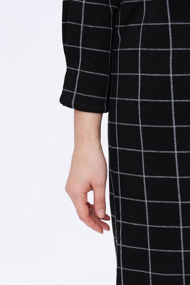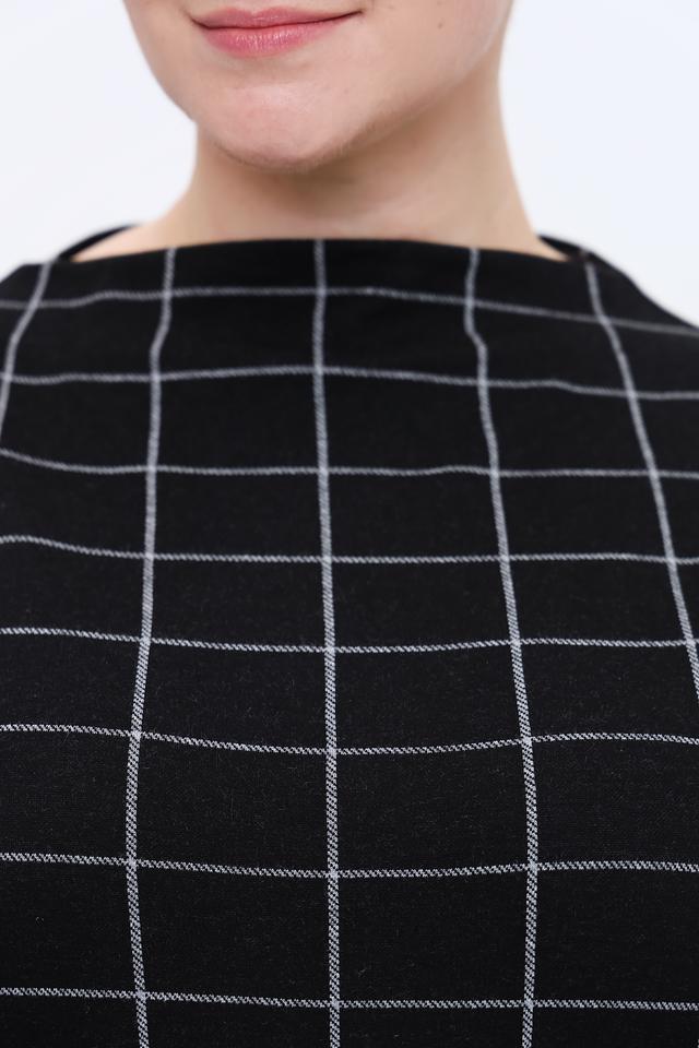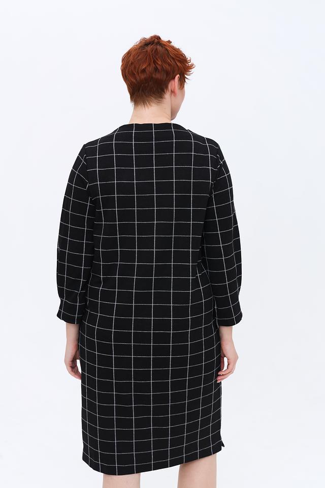 Это платье от Via Appia – отличный выбор для тех, кто ценит комфорт и стиль. Платье выполнено в чёрно-белой цветовой гамме с классическим принтом "клетка", который всегда актуален.