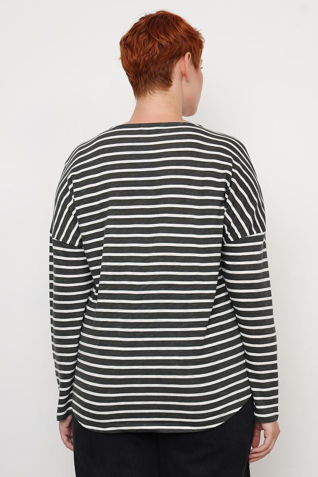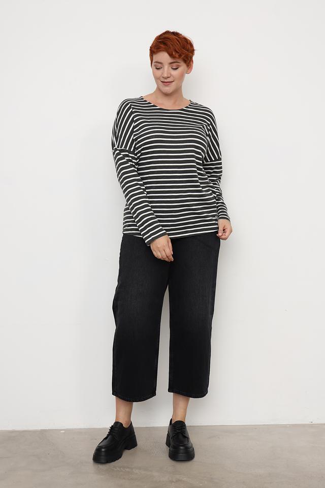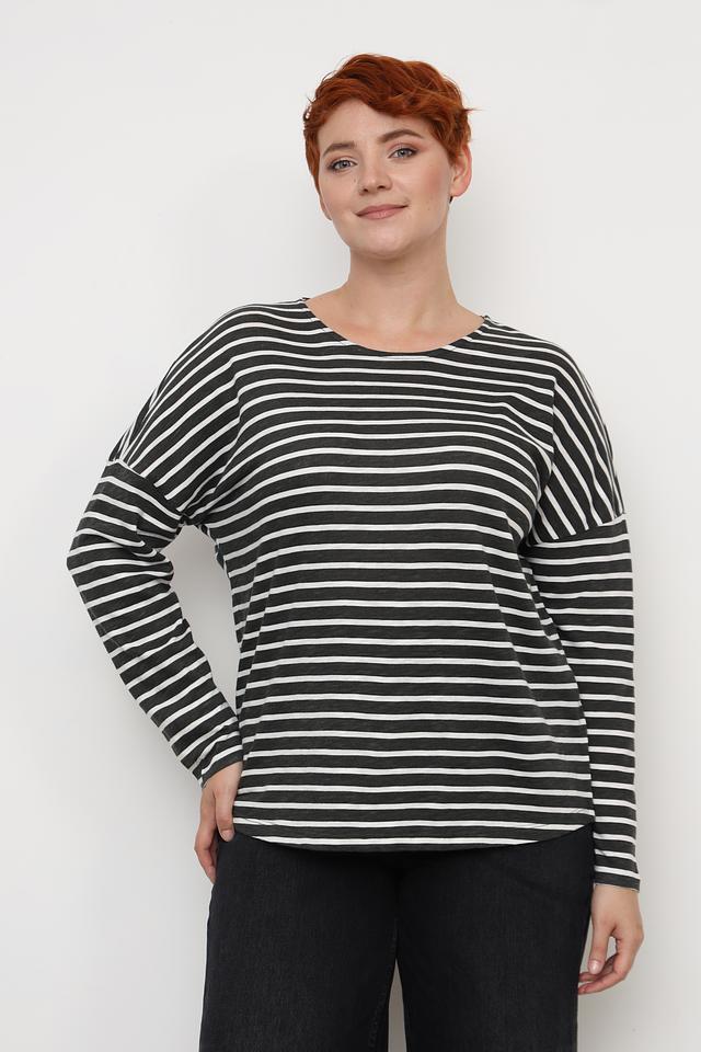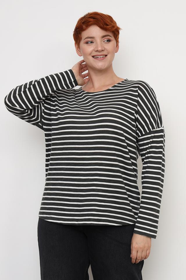 Округлый вырез горловины и длинные рукава делают этот лонгслив идеальным для прохладной погоды. Он отлично сочетается с джинсами, брюками, юбками и шортами. Универсальный чёрно-белый цвет позволяет легко комбинировать его с другими элементами одежды.