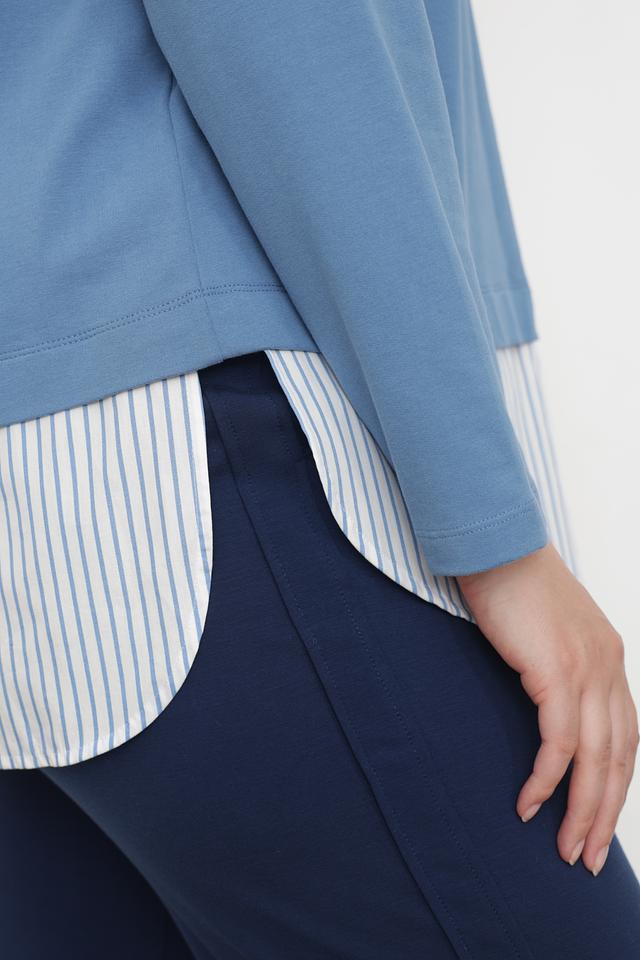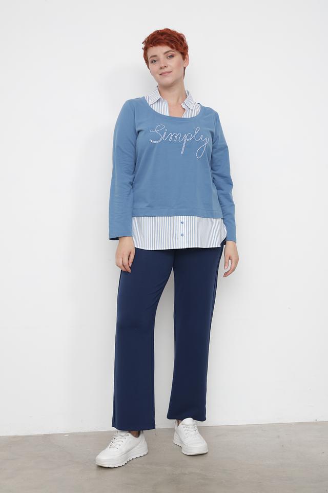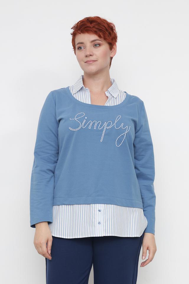 Голубой пуловер от Via Appia с вышивкой "Simply" – стильная и комфортная модель из хлопка с добавлением эластана. Удобный крой и мягкий материал делают этот пуловер идеальным выбором для повседневной носки. Состав: хлопок 95%, эластан 5%