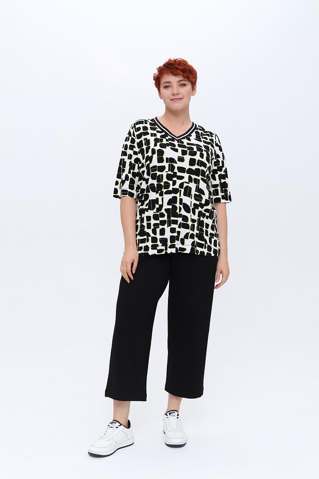 Состав ткани: 70% вискоза, 25% полиэстер, 5% эластан. Вискоза придает брюкам мягкость и приятные тактильные ощущения, полиэстер обеспечивает устойчивость к износу, а эластан – эластичность и свободу движений. Эти брюки станут незаменимой частью вашего гардероба, позволяя создавать стильные и комфортные образы на каждый день.