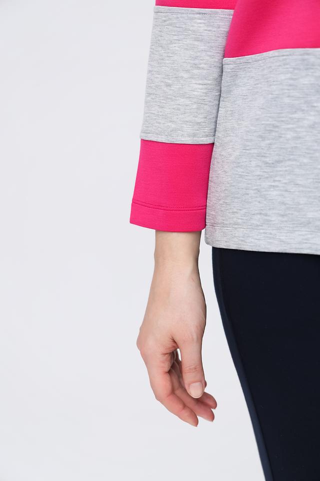 Этот пуловер от Via Appia станет ярким акцентом в вашем гардеробе. Модель выполнена в сочетании фуксии и серого цветов, что делает ее универсальной и легко сочетаемой с другими вещами.