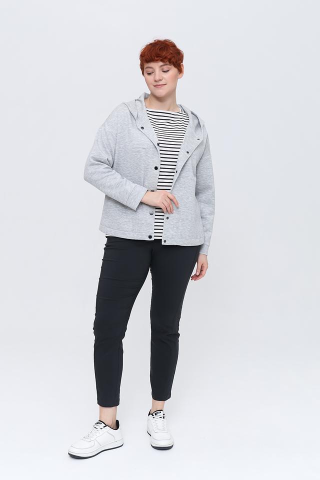 Серый жакет Via Appia с капюшоном и застёжкой на пуговицы – стильное и комфортное решение для повседневного образа. Модель выполнена из мягкой ткани с добавлением вискозы, полиэстера и эластана, обеспечивающей удобную посадку. Состав: вискоза 49%, полиэстер 43%, эластан 8%