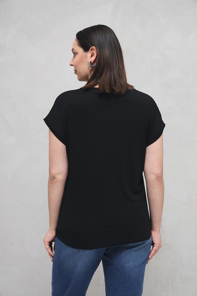 Черная футболка Via Appia с короткими рукавами, украшенная россыпью камней на вырезе горловины. Изготовлена из мягкого и приятного к телу сочетания хлопка и модала, обеспечивающего комфорт в носке. Состав: хлопок 50%, модал 50%