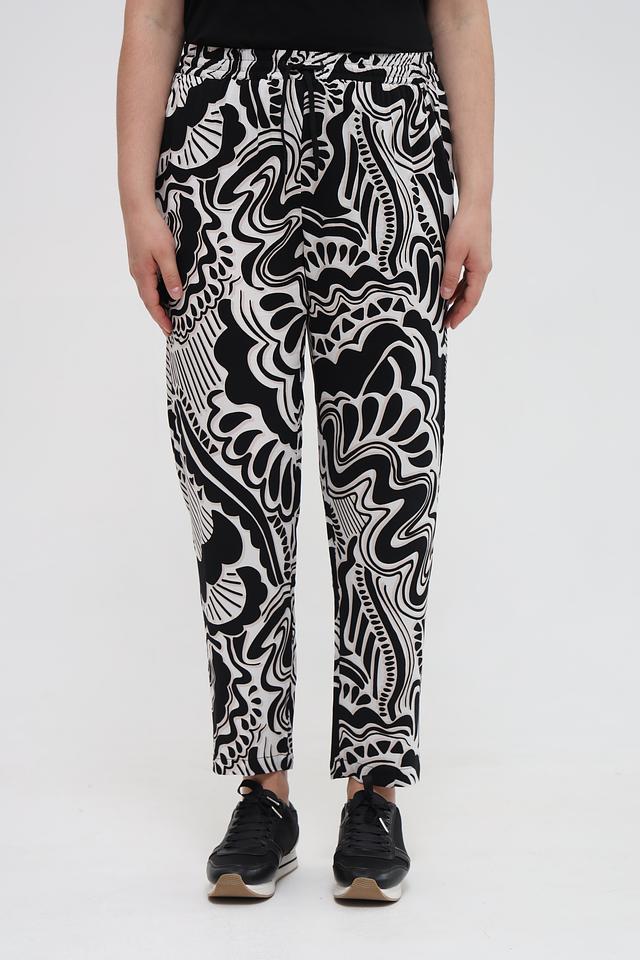 Представляем стильные брюки от бренда Via Appia DUE. Эта модель выполнена в оригинальном дизайне с абстрактным чёрно-белым принтом, который добавит изюминку вашему образу.