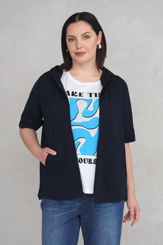 Жакет Via Appia черного цвета – это стильная и удобная модель с короткими рукавами и капюшоном. Застежка-молния и функциональные карманы добавляют практичности, а комфортный крой обеспечивает свободу движений. Состав: полиэстер 45%, вискоза 43%, эластан 12%
