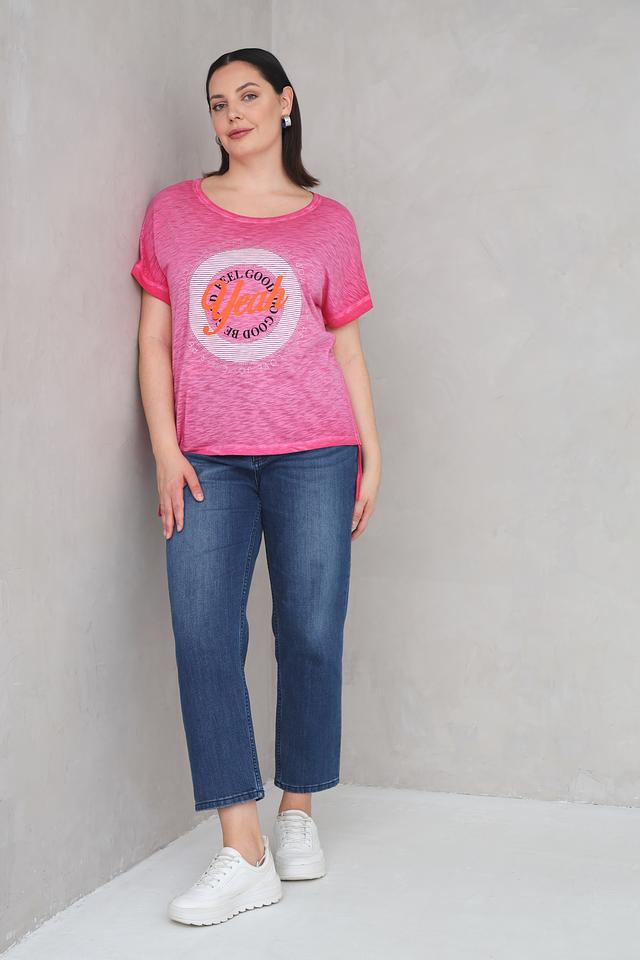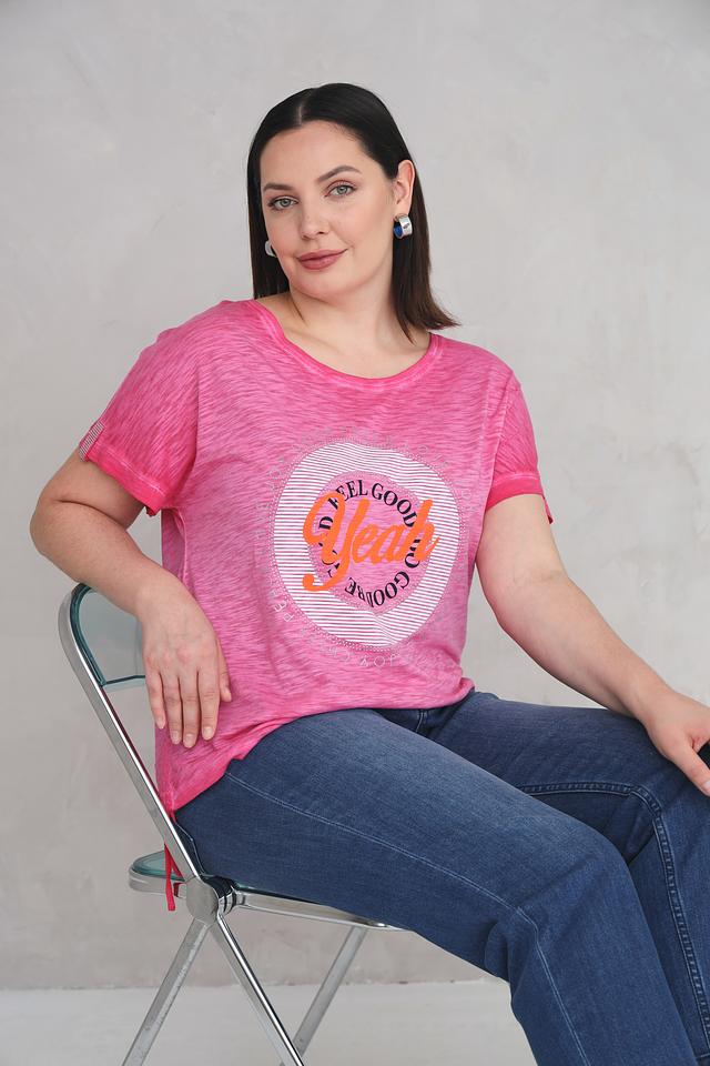 Розовая футболка Via Appia с круглым вырезом и ярким принтом "Feel Good". Изготовлена из мягкого хлопка с добавлением вискозы для комфорта и приятных ощущений. Отличный выбор для создания повседневного образа. Состав: хлопок 52%, вискоза 48%