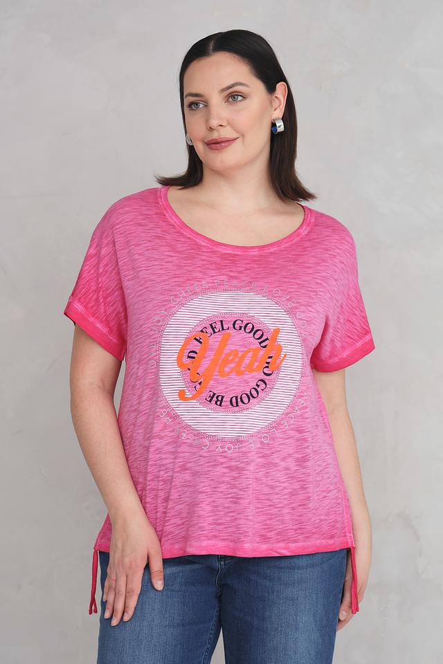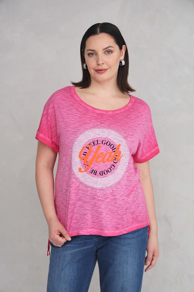 Эта стильная футболка от Via Appia станет прекрасным дополнением к вашему гардеробу. Футболка выполнена в нежном розовом цвете с оригинальным принтом "Feel Good", который добавит позитива вашему образу.