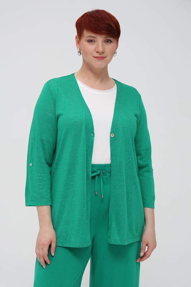 Зелёный жакет Via Appia DUE – это стильная и комфортная модель с V-образным вырезом и рукавами 3/4. Жакет выполнен из мягкой вискозы с добавлением полиэстера, что обеспечивает приятные тактильные ощущения и удобство в носке. Состав: вискоза 70%, полиэстер 30%