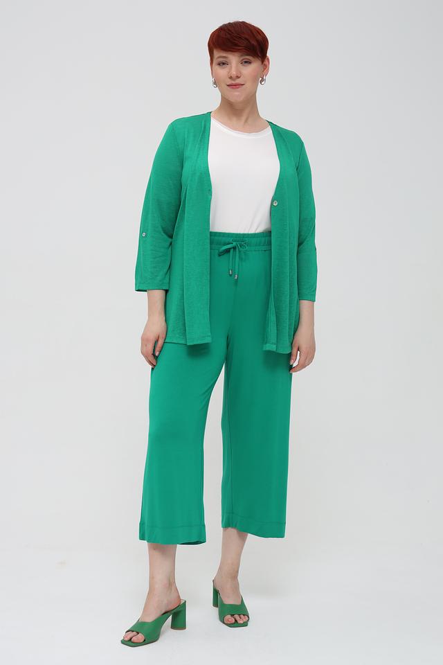 Представляем стильные брюки-кюлоты от бренда Via Appia. Эта модель выполнена в насыщенном зелёном цвете и станет ярким акцентом в вашем гардеробе.