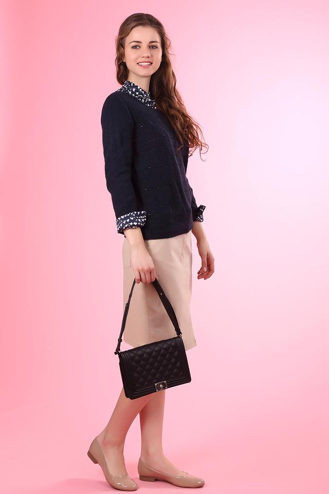 Этот пуловер идеально сочетается с юбками, брюками и джинсами, позволяя создавать разнообразные образы – от повседневных до более элегантных.