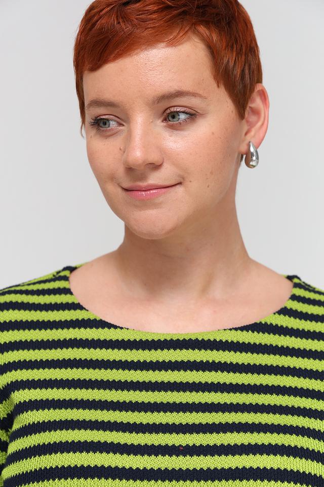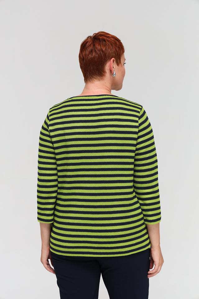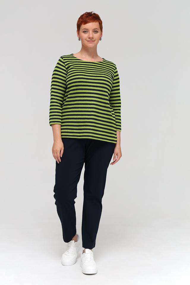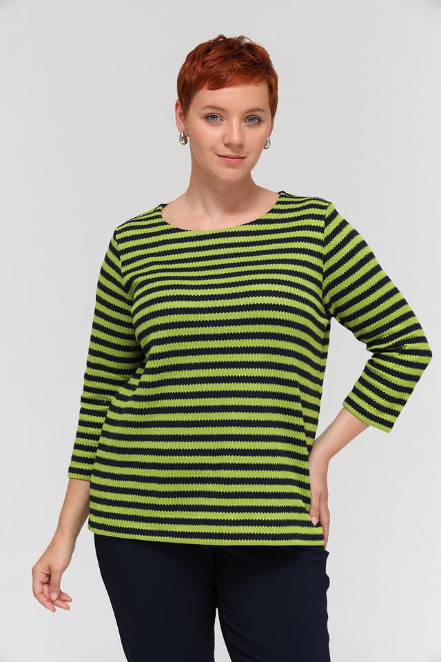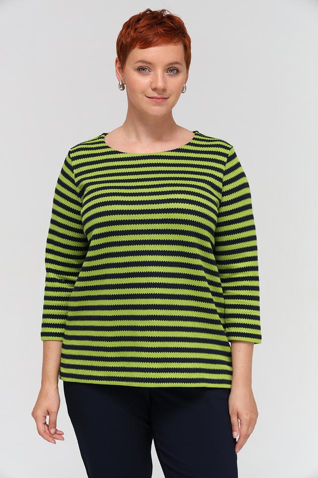 Женский пуловер Via Appia зеленого и черного цвета с полосатым узором и рукавом 3/4. Изготовлен из мягкого сочетания хлопка и полиэстера, обеспечивающего комфорт и удобство в носке. Состав: полиэстер 50%, хлопок 50%
