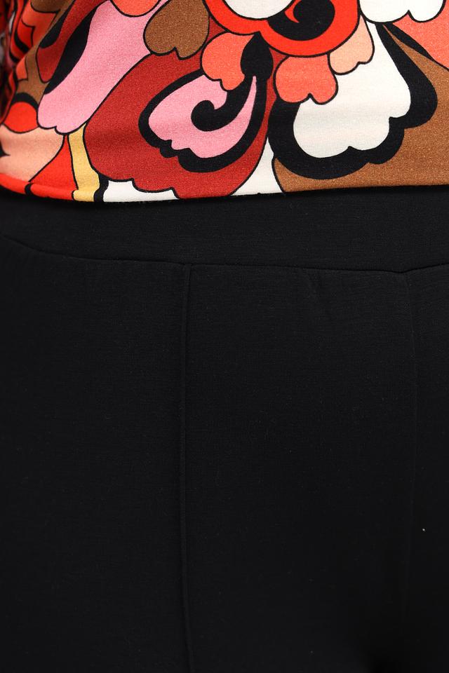 Чёрные брюки клёш от Via Appia — элегантная и комфортная модель с завышенной талией. Изготовлены из мягкой вискозы с добавлением полиэстера и эластана, обеспечивающих приятные тактильные ощущения и хорошую посадку. Состав: вискоза 49%, полиэстер 43%, эластан 8%