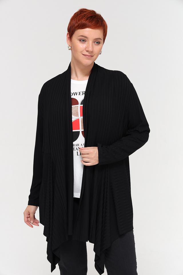 Черный жакет Via Appia – это стильная и комфортная модель с V-образным вырезом и асимметричным кроем. Жакет выполнен из мягкой вискозы с добавлением эластана, что обеспечивает удобную посадку и свободу движений. Состав: вискоза 93%, эластан 7%