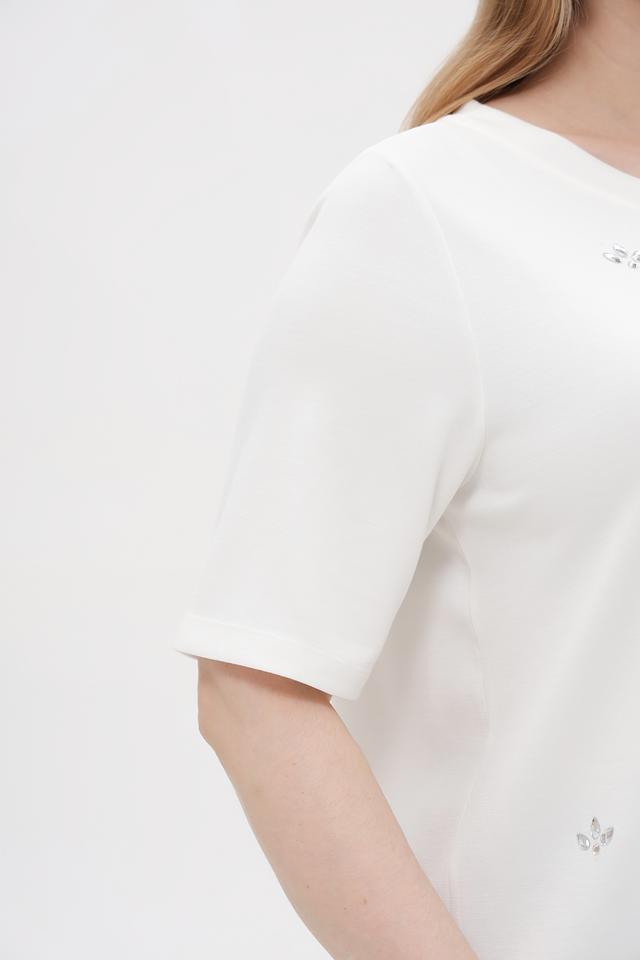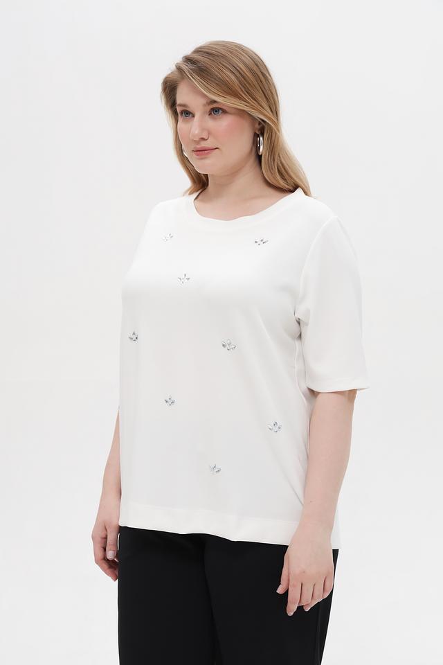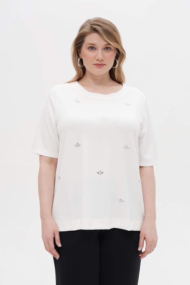Особенностью модели является деликатная вышивка, придающая ей изысканность и женственность. Пуловер имеет свободный крой, который обеспечивает комфорт в носке и не сковывает движения.