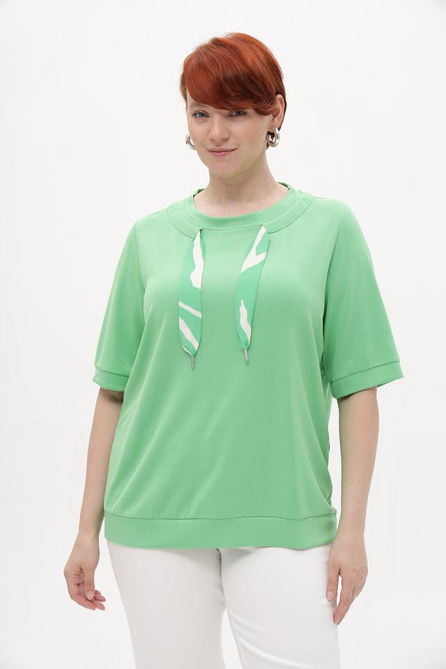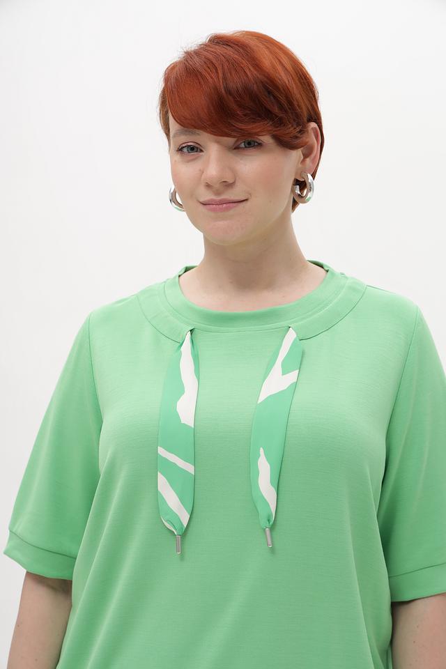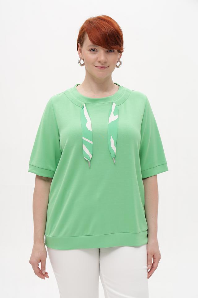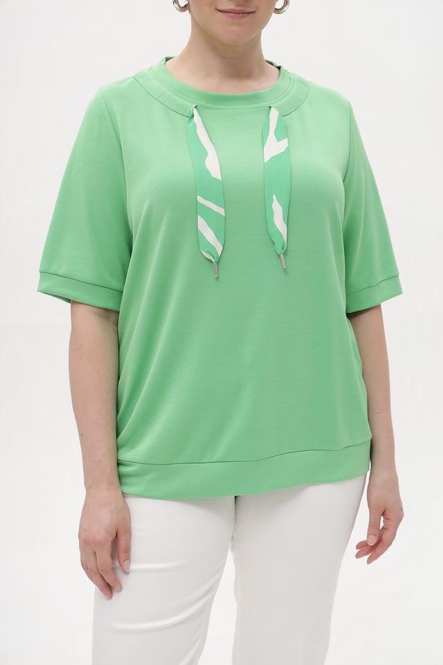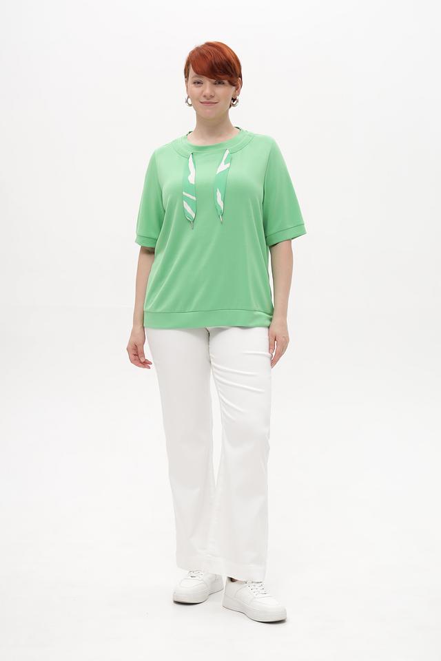 Женский пуловер Via Appia лаймового цвета с декоративными лентами. Изготовлен из мягкой вискозы с добавлением полиамида и эластана для комфорта и хорошей посадки. Состав: вискоза 48%, полиамид 45%, эластан 7%