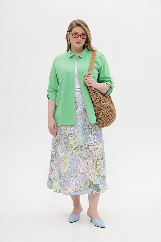 Эта блуза от Via Appia выполнена из высококачественного хлопка с добавлением льна, что обеспечивает комфорт и воздухопроницаемость в жаркую погоду. Преобладающий цвет – зелёный, который отлично сочетается с различными оттенками и стилями.