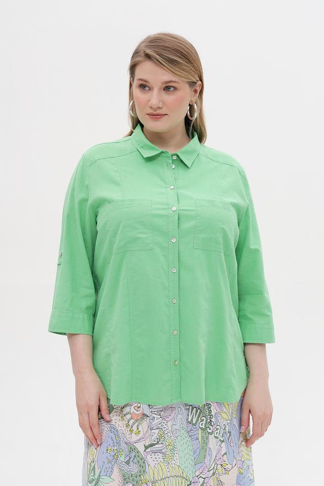 Застежка на пуговицах позволяет регулировать степень прилегания. Состав ткани: 70% хлопок, 30% лен. Эта блуза станет отличным дополнением к вашему гардеробу и позволит создавать разнообразные образы – от повседневных до более нарядных.
