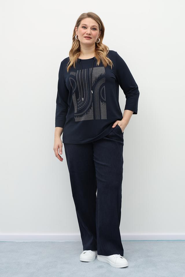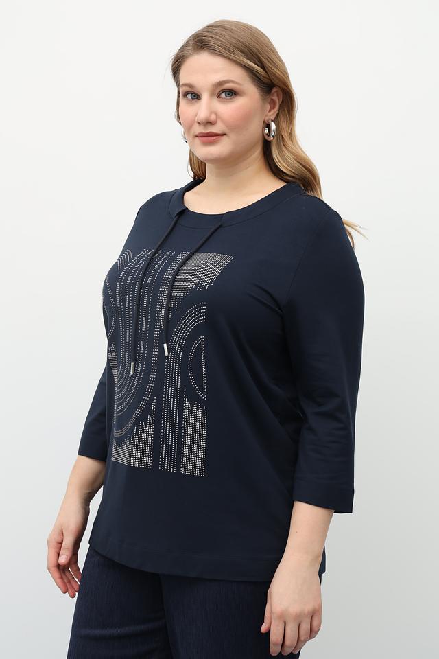 Синяя блузка Via Appia с 3/4 рукавами, украшенная вышивкой из пайеток, станет стильным дополнением вашего гардероба. Изготовлена из приятной к телу вискозы с добавлением эластана. Состав: вискоза 95%, эластан 5%