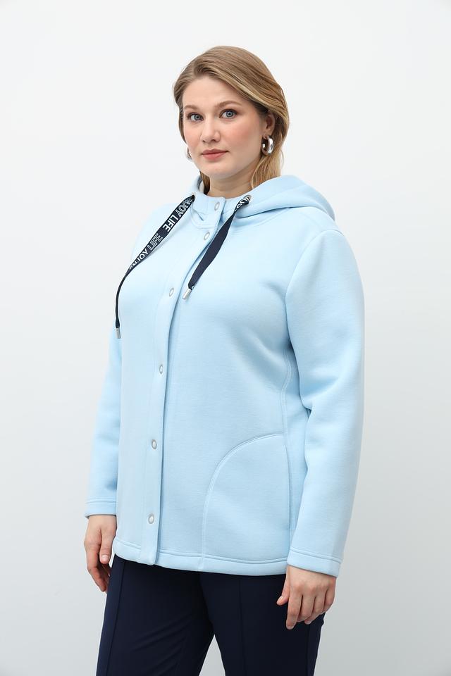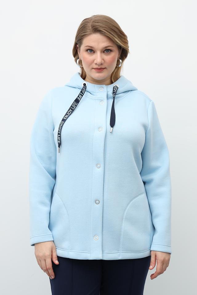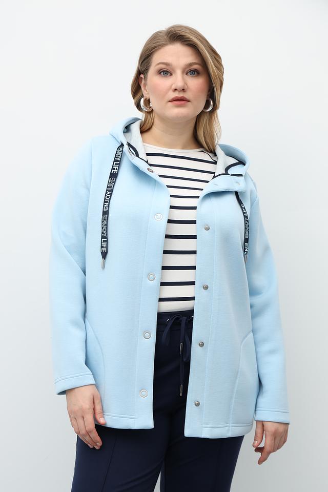 Этот жакет от Via Appia станет отличным дополнением к вашему гардеробу. Модель выполнена в нежном голубом цвете и имеет удобный капюшон, который защитит от ветра и непогоды.