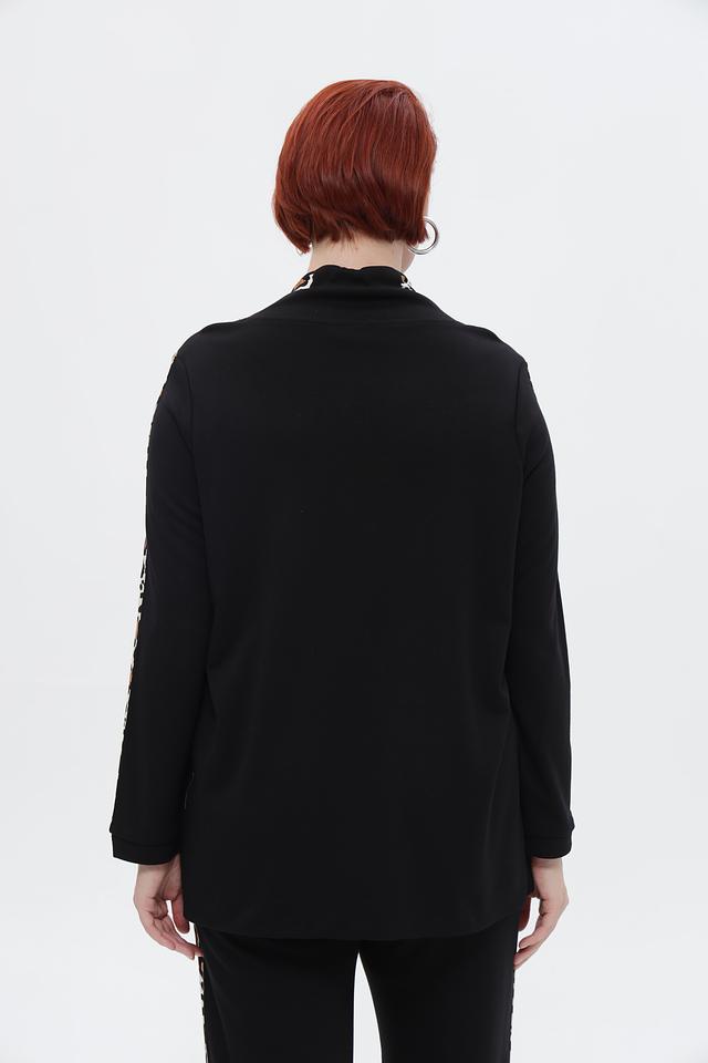 Чёрный пуловер Via Appia с капюшоном и контрастными леопардовыми полосками на рукавах. Удобный и стильный выбор для создания повседневных образов. Изготовлен из мягкой ткани. Состав: вискоза 84%, полиэстер 14%, эластан 2%