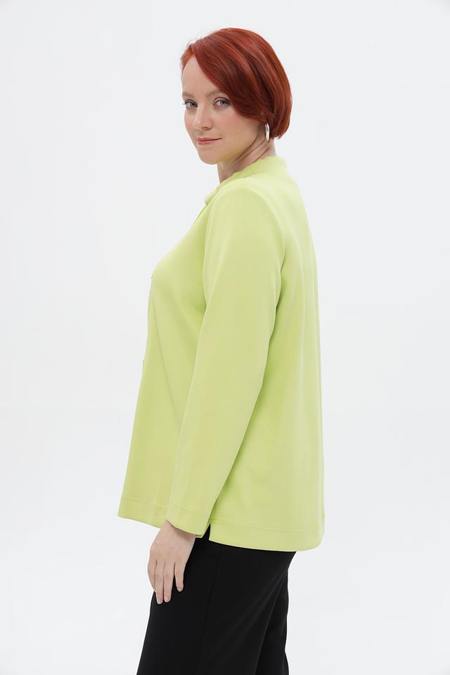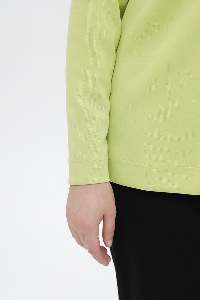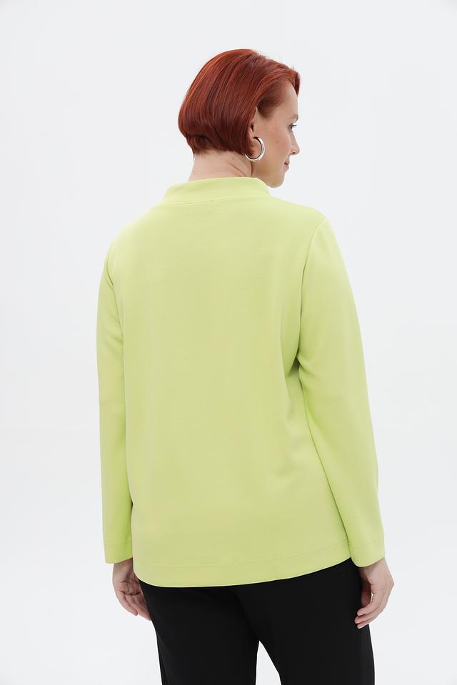 Состав ткани: 43% вискоза, 12% эластан, 45% полиэстер. Такой состав обеспечивает приятные тактильные ощущения и хорошую посадку по фигуре. Пуловер легко стирается и быстро сохнет.
